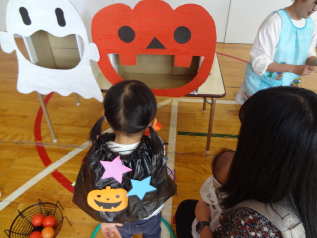 10月6日(月)の園開放は入園説明会と併せて実施しました。 10月なのでハロウインパーティーをして楽しんでいただきました☆ まずは朝のご挨拶・・・何度も来てくれ…