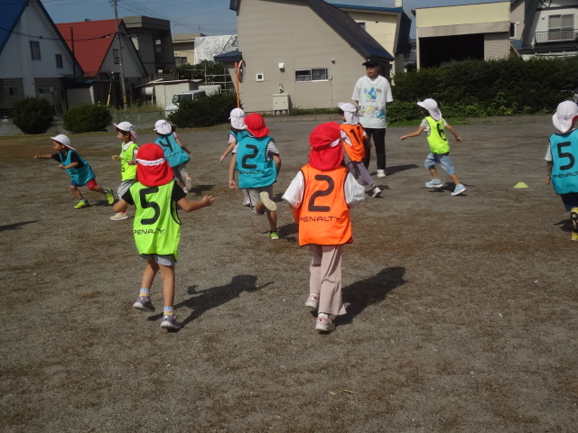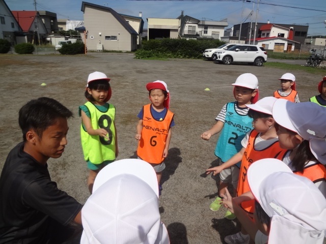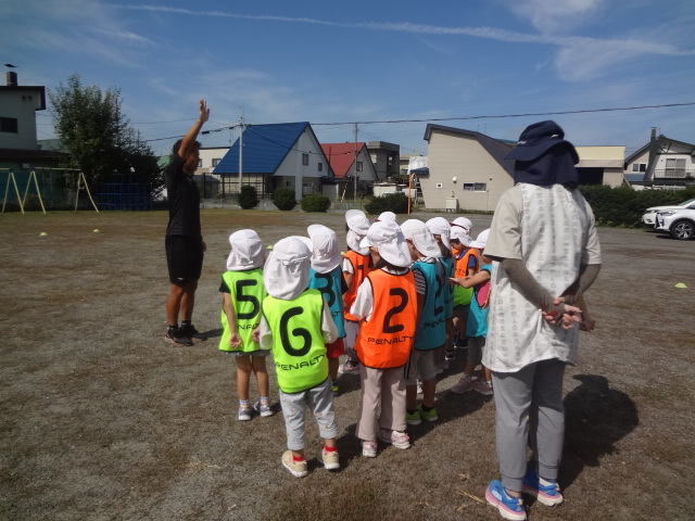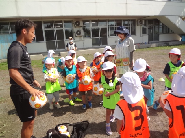 サッカー協会から来た、ゆっきーコーチがきりん組のお友だちにサッカーを教えに来てくれました。