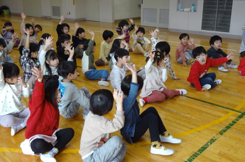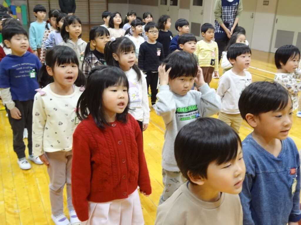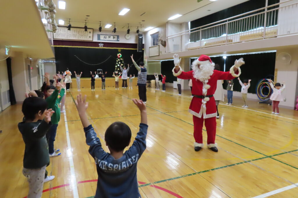 みんなで『あわてんぼうのサンタクロース』の歌と『ジングルベル』の曲に合わせた踊りもサンタさんに披露しました。