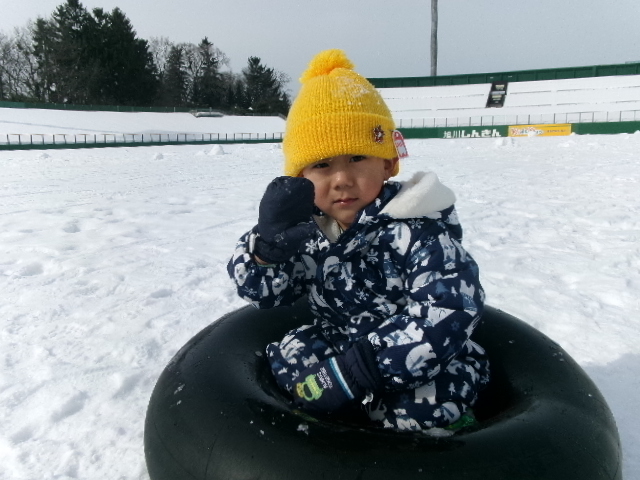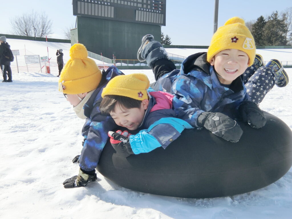 2月は、学年ごとにスタルヒン球場でチューブすべりを