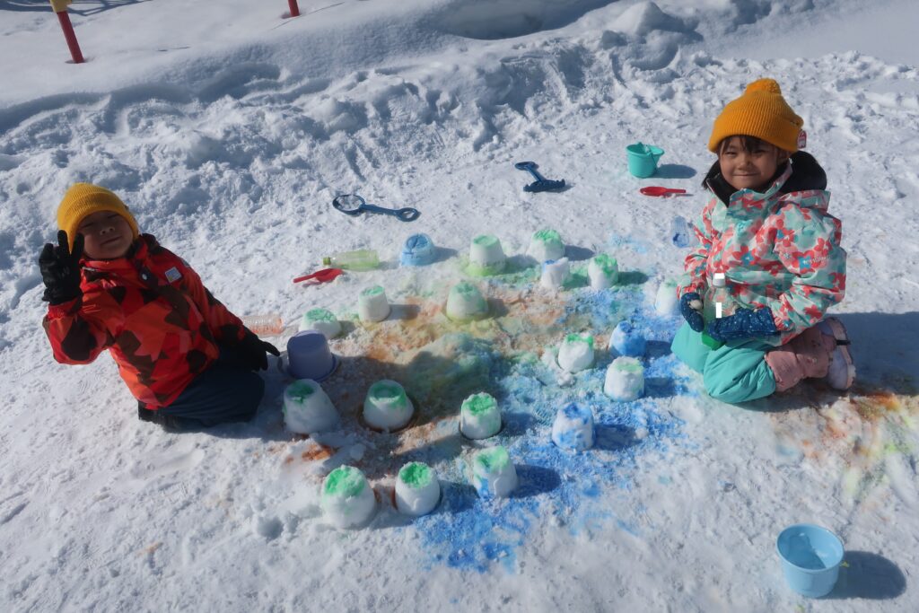 園庭でも時間があれば毎日外に出て、雪あそびを行いました!