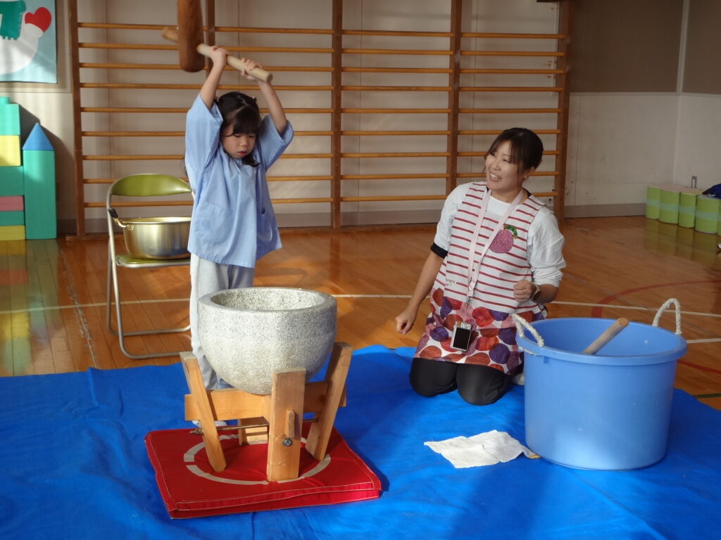 12月5日(金)におもちつき会を行いました! 朝一で・・・始めに・・・蒸す前と蒸した後のもち米を比べました! 「ご飯みたい!」や「どんなにおいかな?」などの声が…